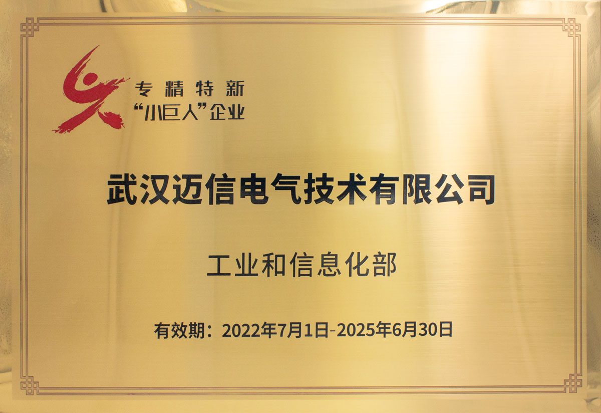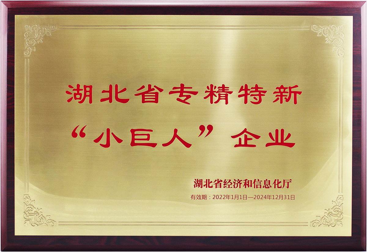 • 湖北省專精特新“小巨人”企業(yè) 頒發(fā)時間:2022年1月 頒發(fā)單位:湖北省經(jīng)濟(jì)和信息化廳