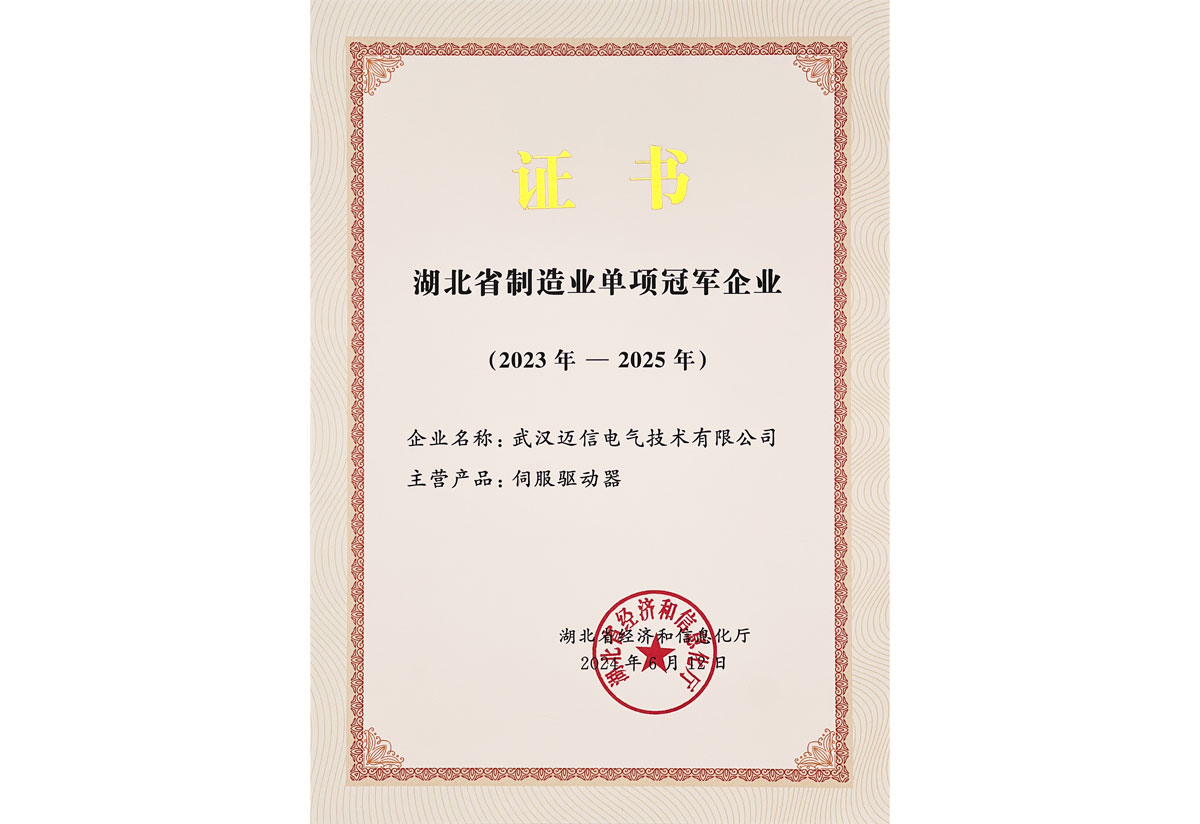 • 湖北省制造業(yè)單項(xiàng)冠軍企業(yè) 頒發(fā)時間:2024年6月 頒發(fā)單位:湖北省經(jīng)濟(jì)和信息化廳