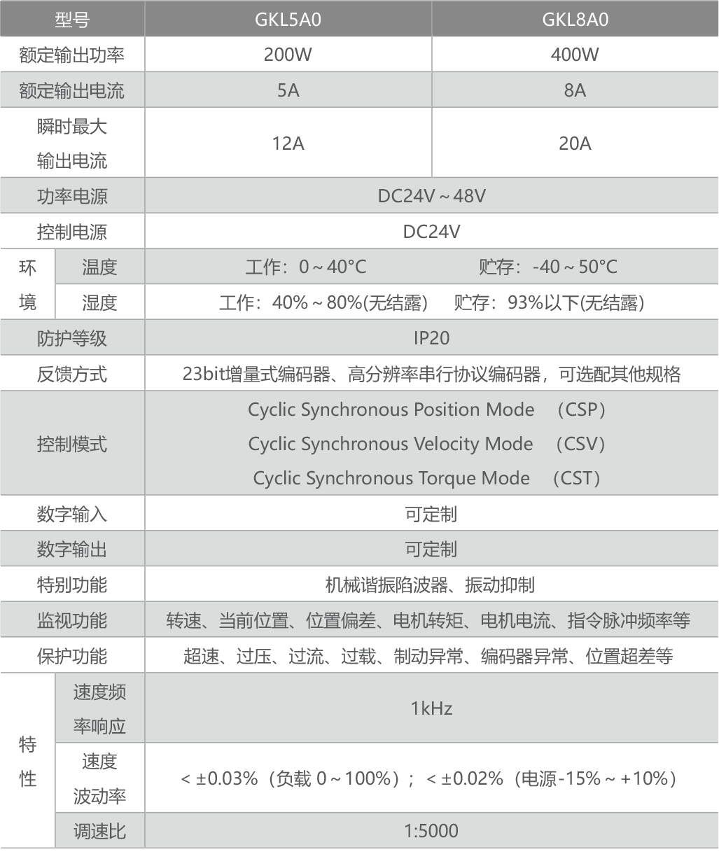 ● EtherCAT通訊接口,便于多軸連接控制,125us最小通訊周期。
