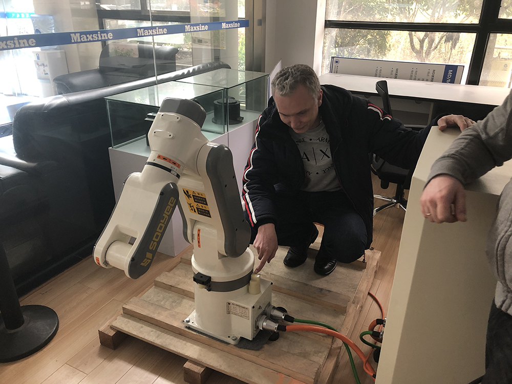 身為機(jī)器人應(yīng)用廠家,展廳中的工業(yè)機(jī)器人引起了俄羅斯朋友的興趣,大家圍繞邁信自主研發(fā)的六軸多合一伺服驅(qū)動器EPR6及工業(yè)機(jī)器人相談甚歡。
