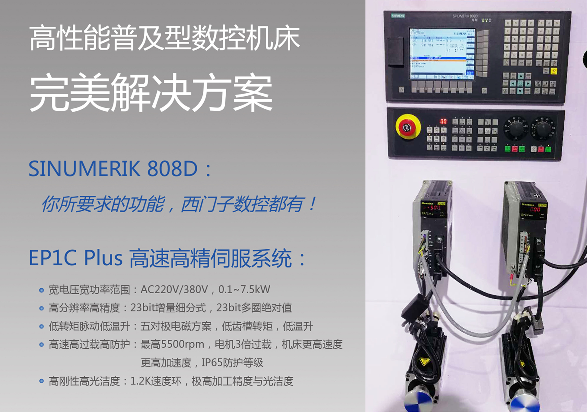 ▲ 西門子SINUMERIK 808D + EP1C Plus高性能普及型數(shù)控機床完美解決方案