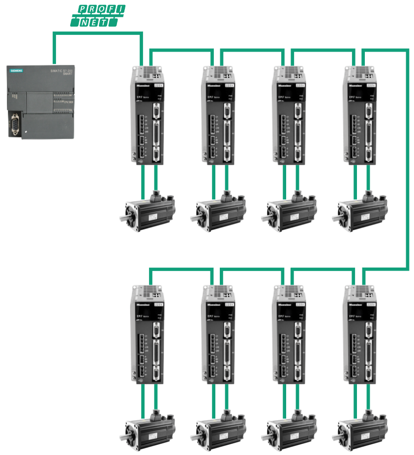 西門子S7-200 SMART PLC通過(guò)PROFINET接口與EP3E PROFINET伺服驅(qū)動(dòng)器連接。