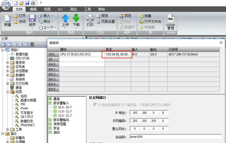 1. 創(chuàng)建PLC項(xiàng)目,確認(rèn)PLC固件版本為V02.04