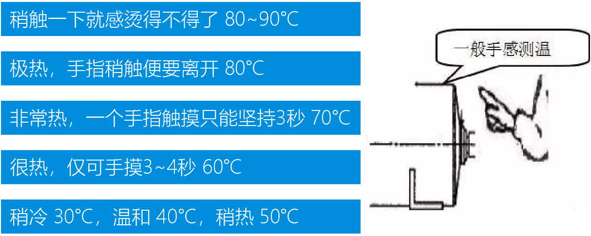 要點三、手感軸承外表面溫度一般以很熱(手摸3~4秒)為上限,即滾動軸承溫度上限一般為80℃。