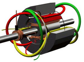 電機主要包括一個用以產(chǎn)生磁場的電磁鐵繞組或分布的定子繞組和一個旋轉(zhuǎn)電樞或轉(zhuǎn)子和其它附件組成。在定子繞組旋轉(zhuǎn)磁場的作用下,其在電樞鼠籠式鋁框中有電流通過并受磁場的作用而使其轉(zhuǎn)動。