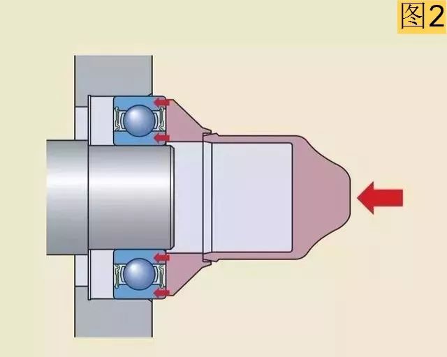 安裝內(nèi)圈(或外圈)過盈配合的軸承,禁止用鐵錘直接敲擊軸承內(nèi)圈(或外圈)端面,這樣很容易把擋邊敲壞。應(yīng)該采用套筒放在內(nèi)圈(或外圈)端面上,用鐵錘敲擊套筒來安裝。