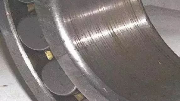 內(nèi)圈和外圈滾道表面被敲壞的痕跡