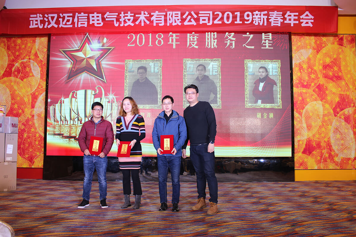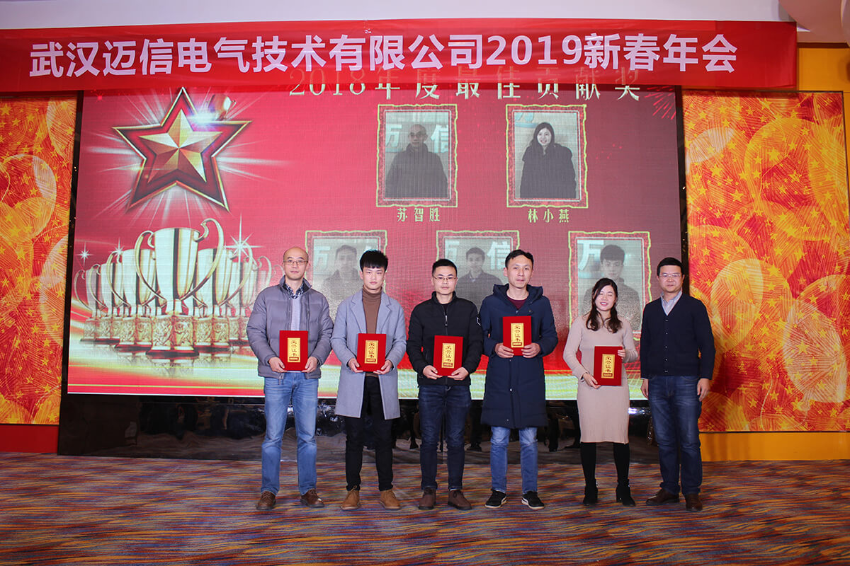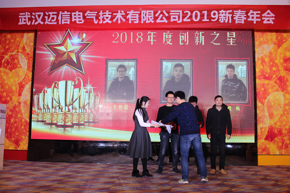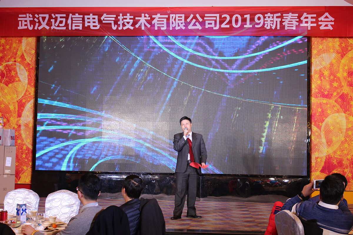 2019年1月28日,武漢邁信電氣技術(shù)有限公司“沖未來!動現(xiàn)在!”2019新春年會在武漢亢龍?zhí)榆幘频曷≈嘏e行。