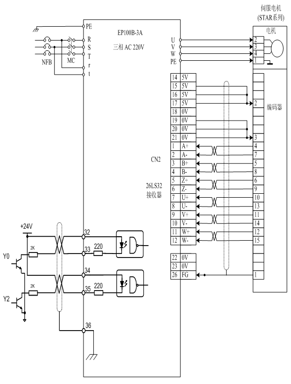 A、正確接好電源線r、t、R、S、T,電機(jī)動(dòng)力線U、V、W、PE,編碼器線(CN2)。